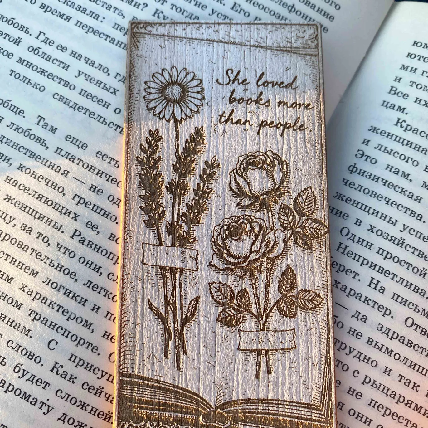 The engraved flowers rising from the pages represent creativity, imagination, and the quiet magic found inside every book. Crafted from natural wood, the design has a soft vintage aesthetic that feels warm, peaceful, and timeless.