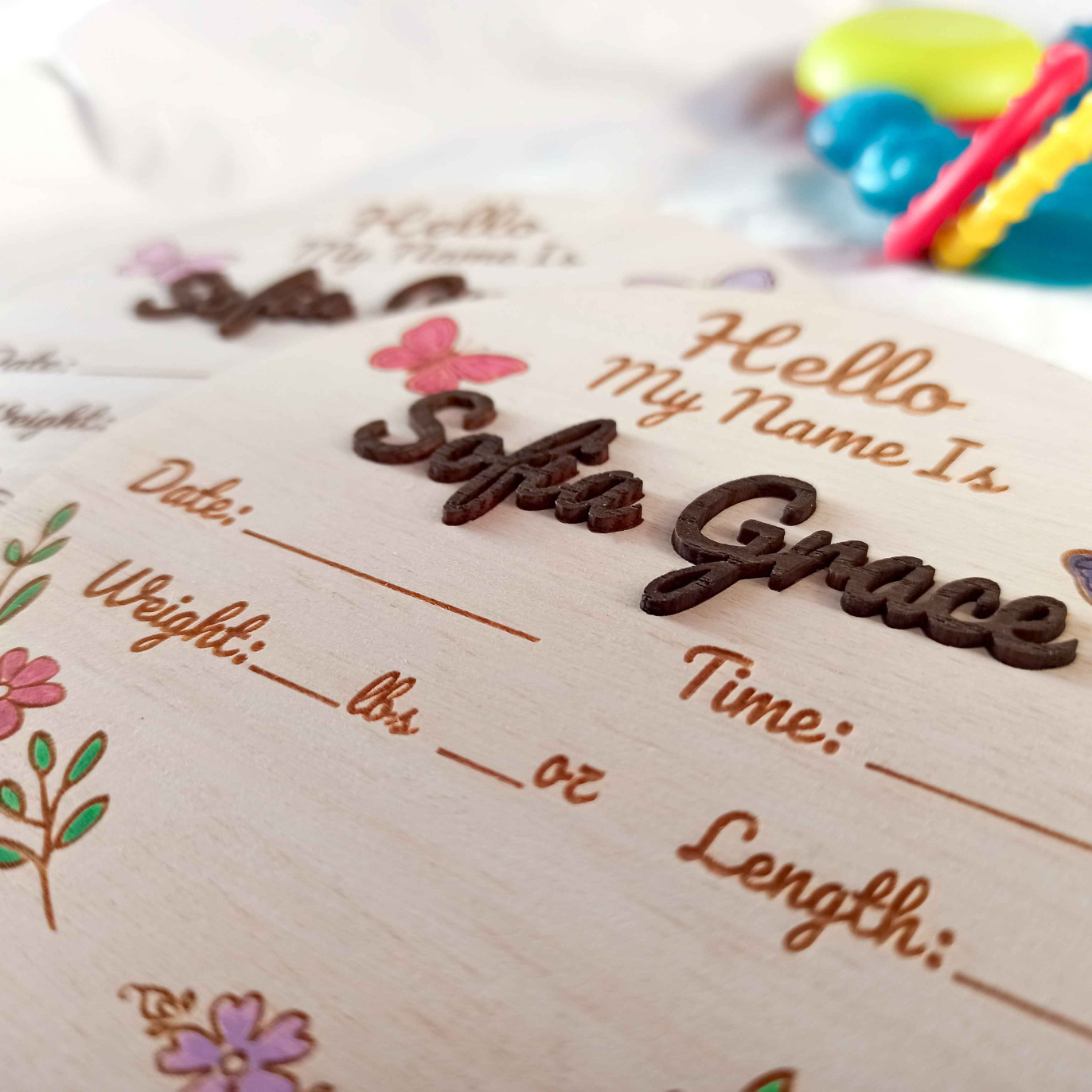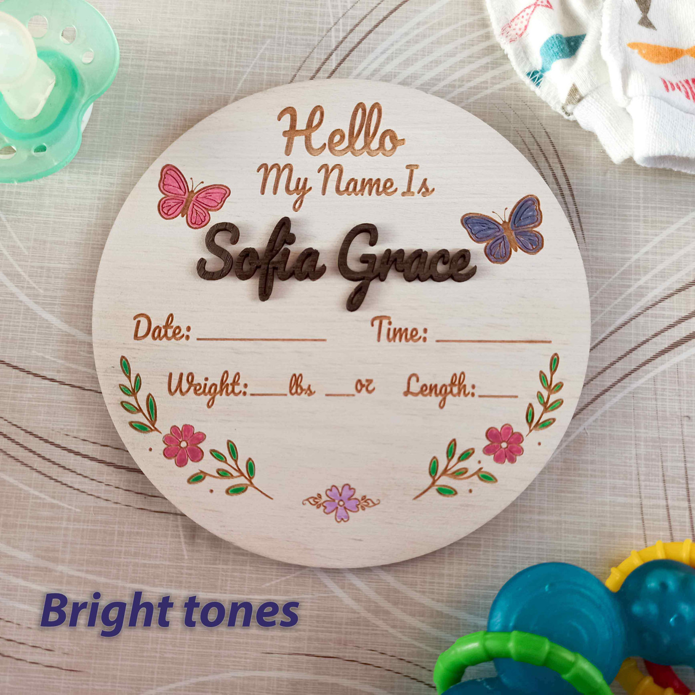 Made from natural birch wood and decorated with delicate butterflies and floral details, this sign is perfect for baby announcements, photos, and lasting memories 💛
