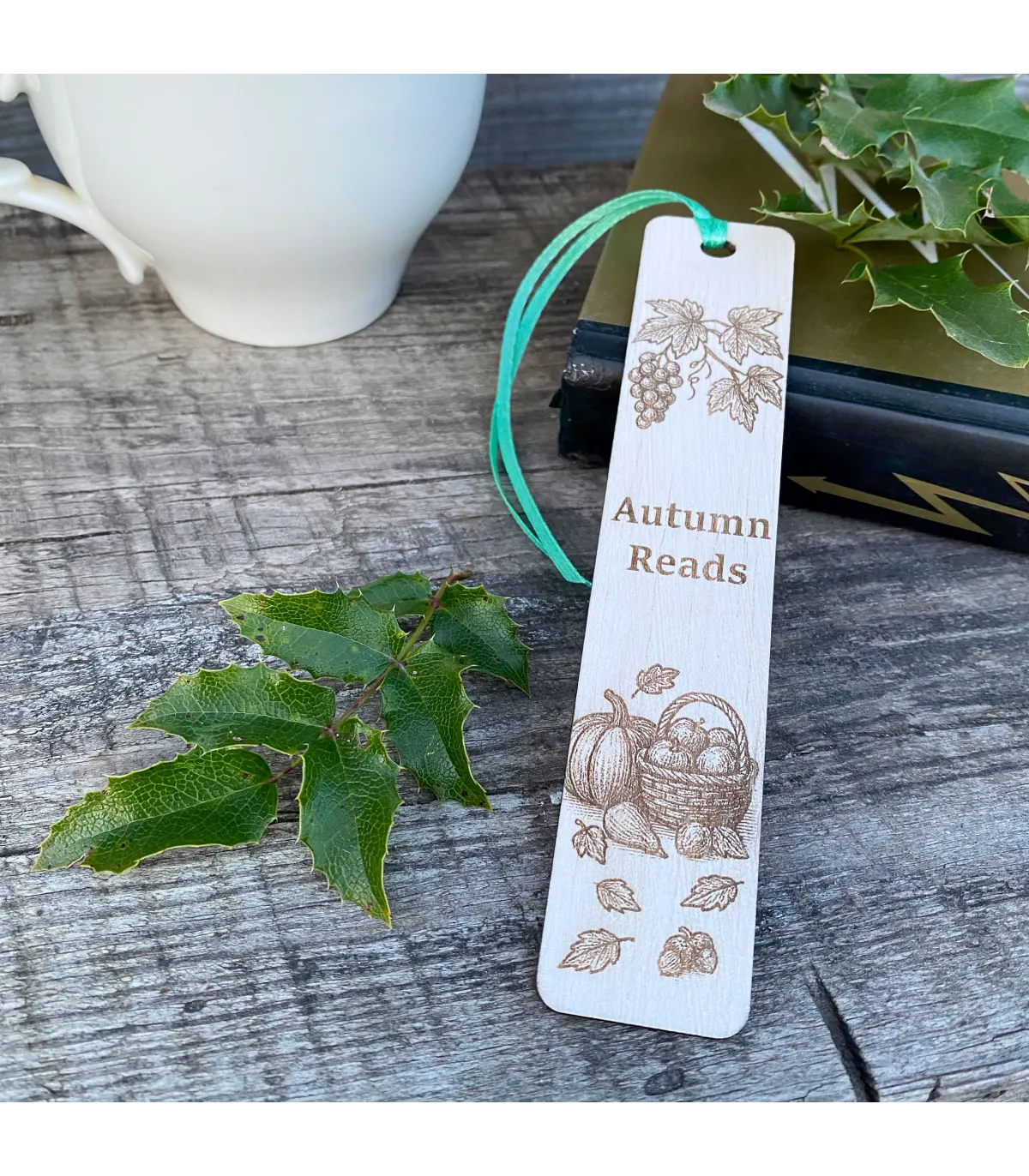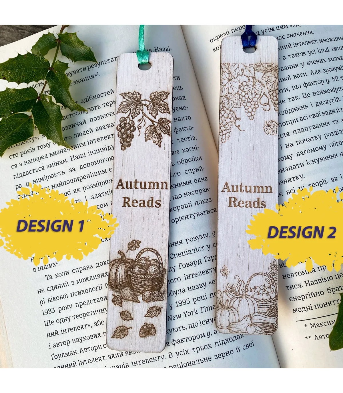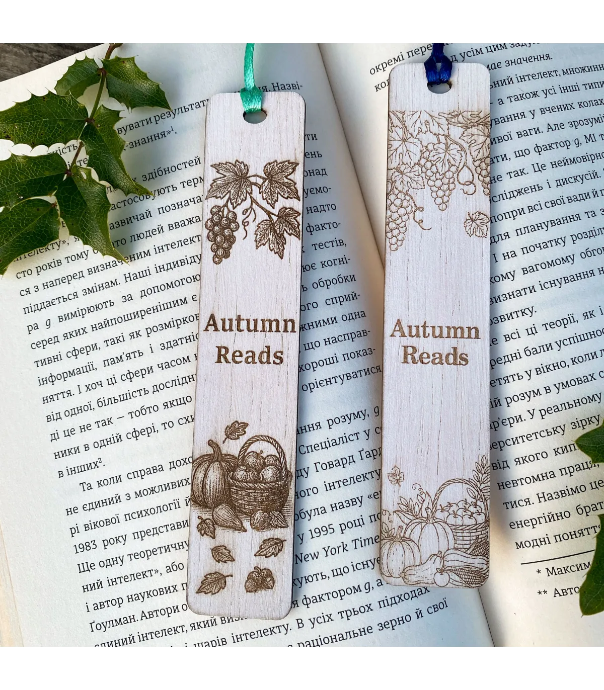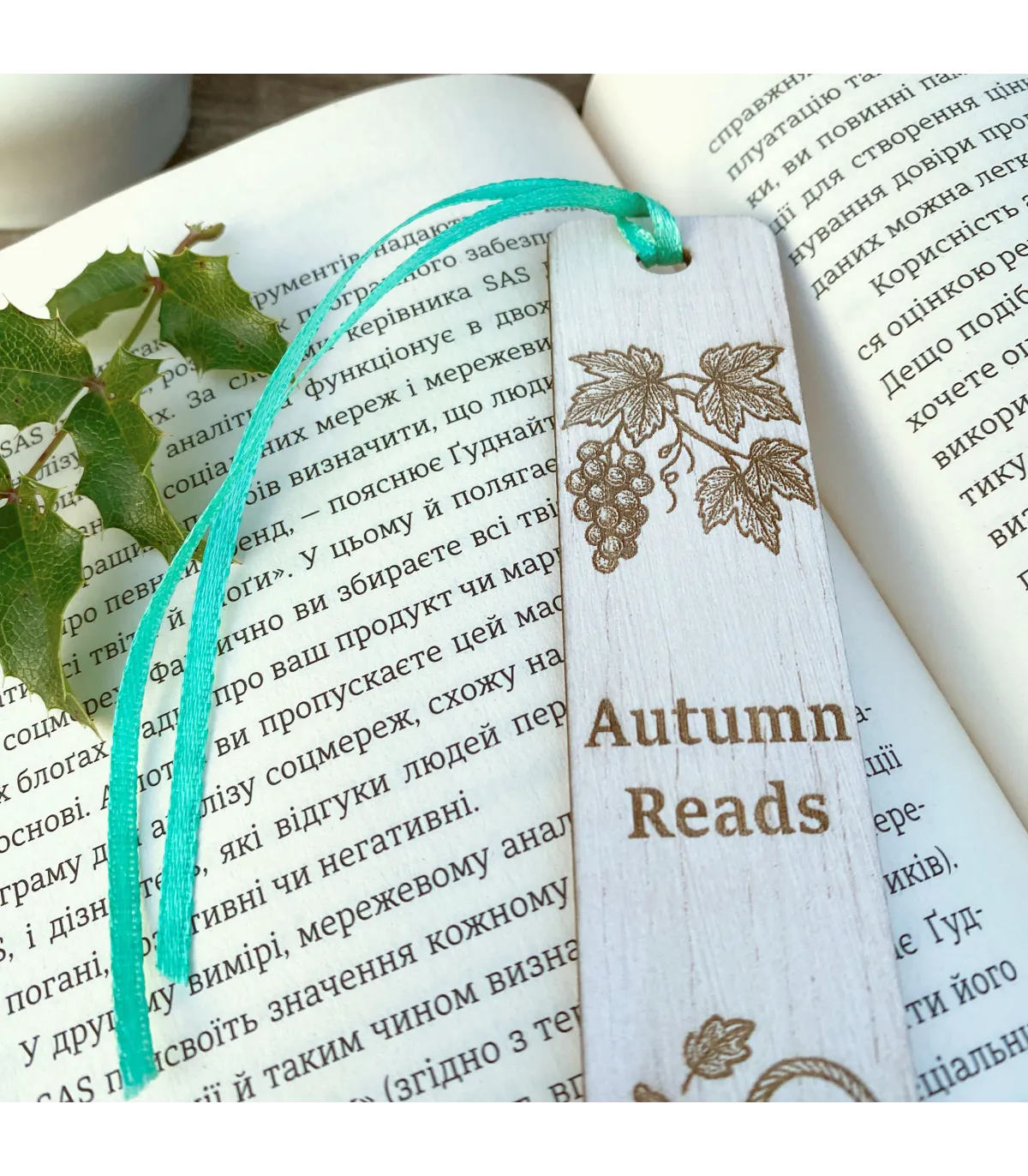 Вишукана дерев’яна закладка з лазерним гравіюванням осінніх мотивів і написом «Autumn Reads». Стильний аксесуар і чудовий подарунок для книголюба.