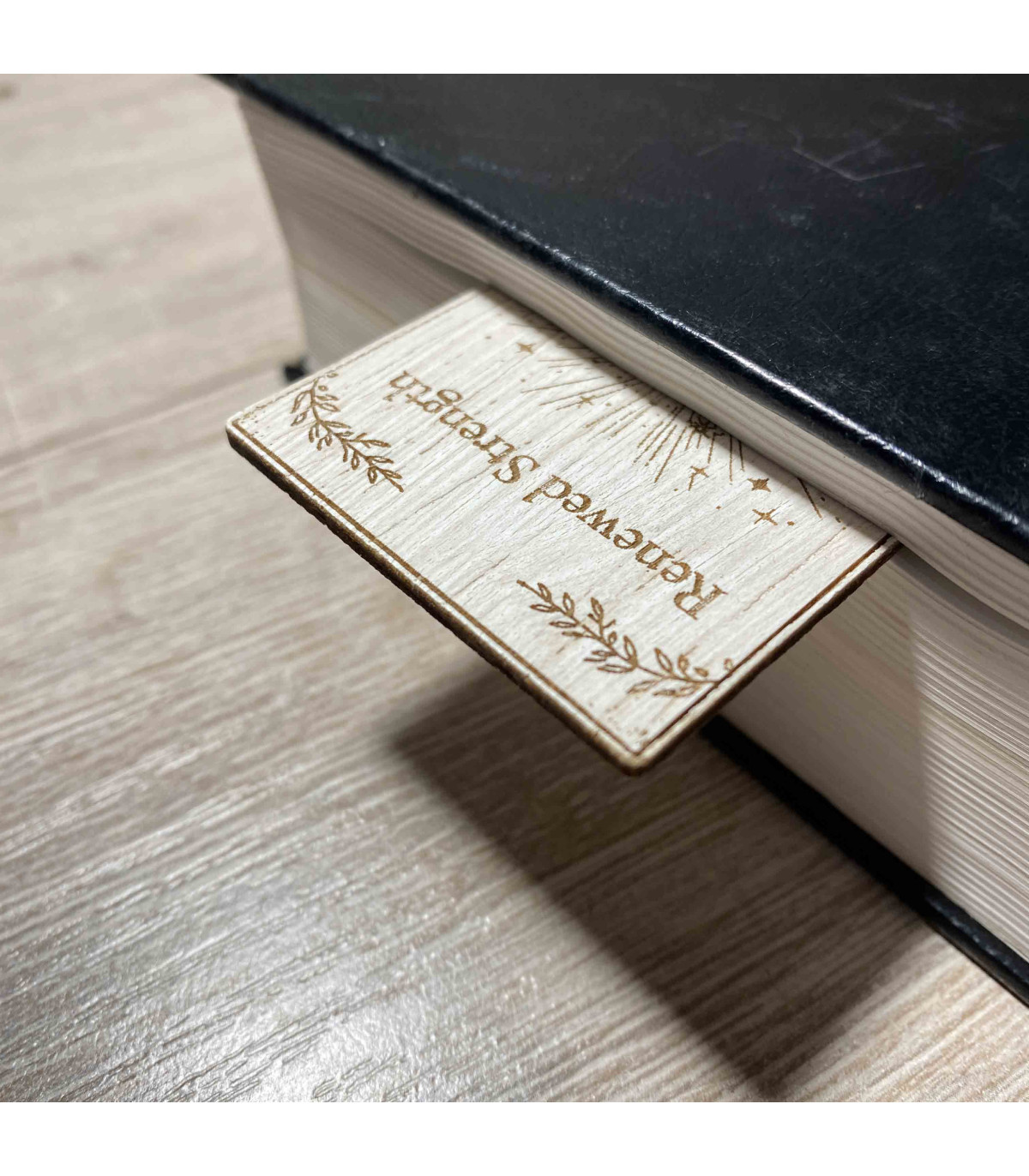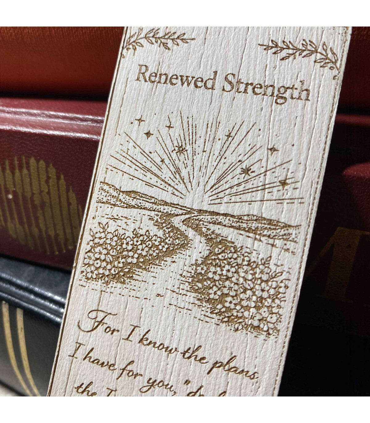 У верхній частині закладки слова «Оновлена сила» підкреслюють послання підбадьорення, яке міститься в Писанні.