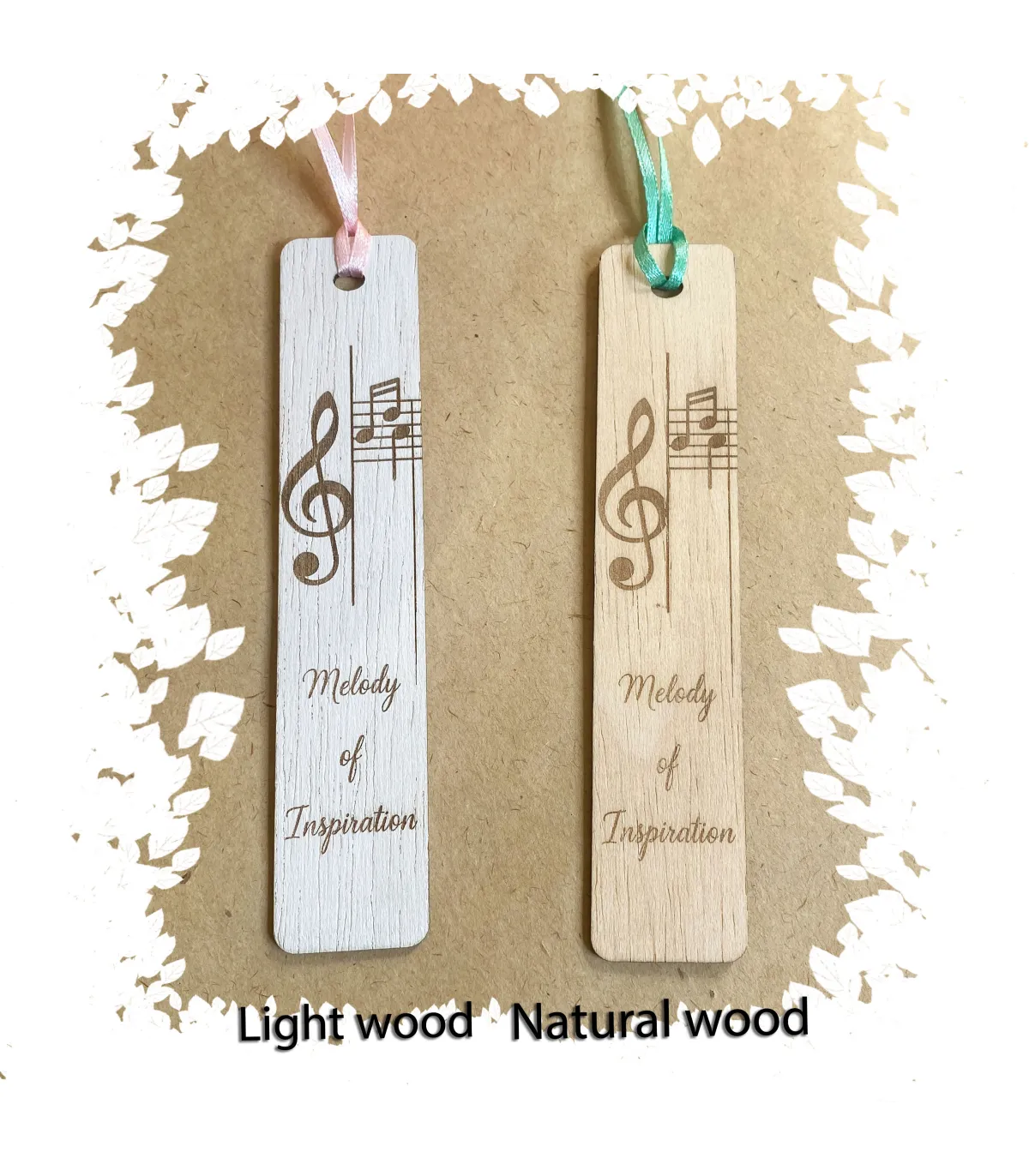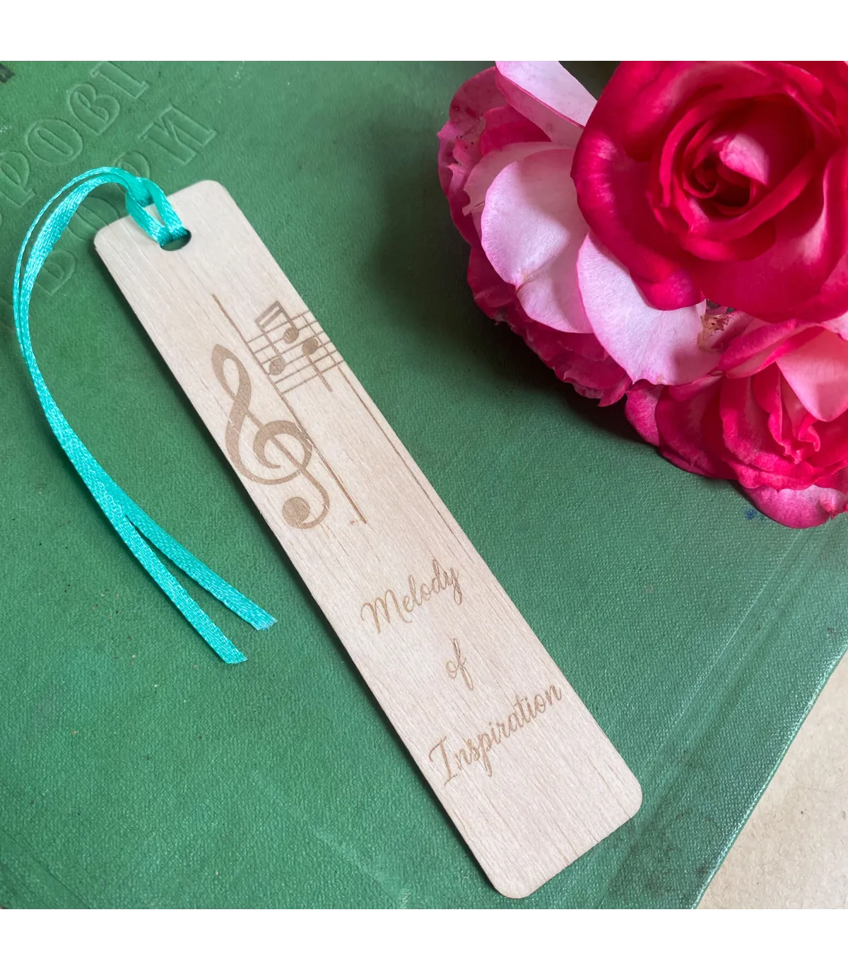 Вишукана закладка з натуральної деревини з гравіюванням скрипкового ключа, нот і напису “Melody of Inspiration”. Ідеальна для тих, хто поєднує любов до музики й читання.