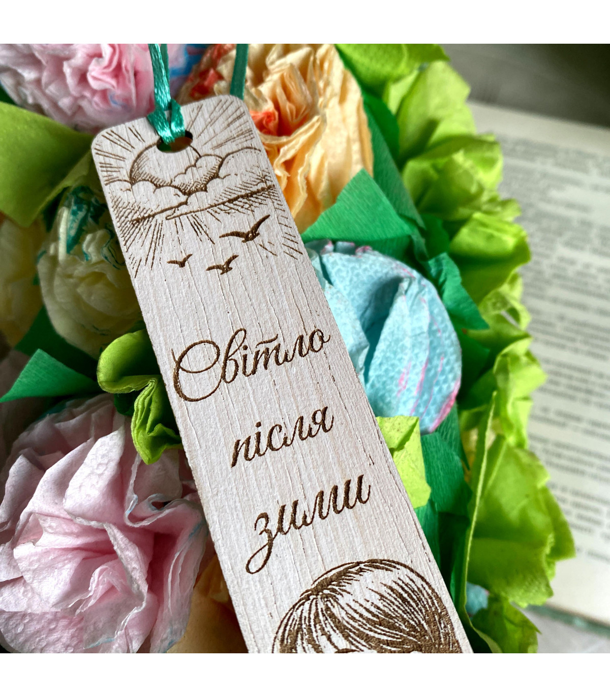 Дерев'яна весняна закладка – «Spring Awakens the Heart» Дерев'яна весняна закладка – «Spring Awakens the Heart»