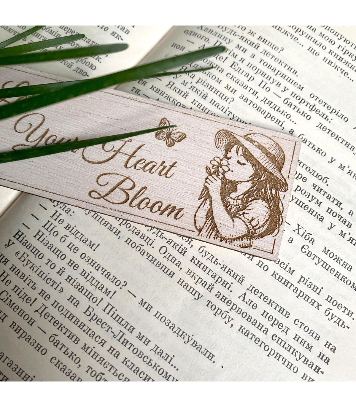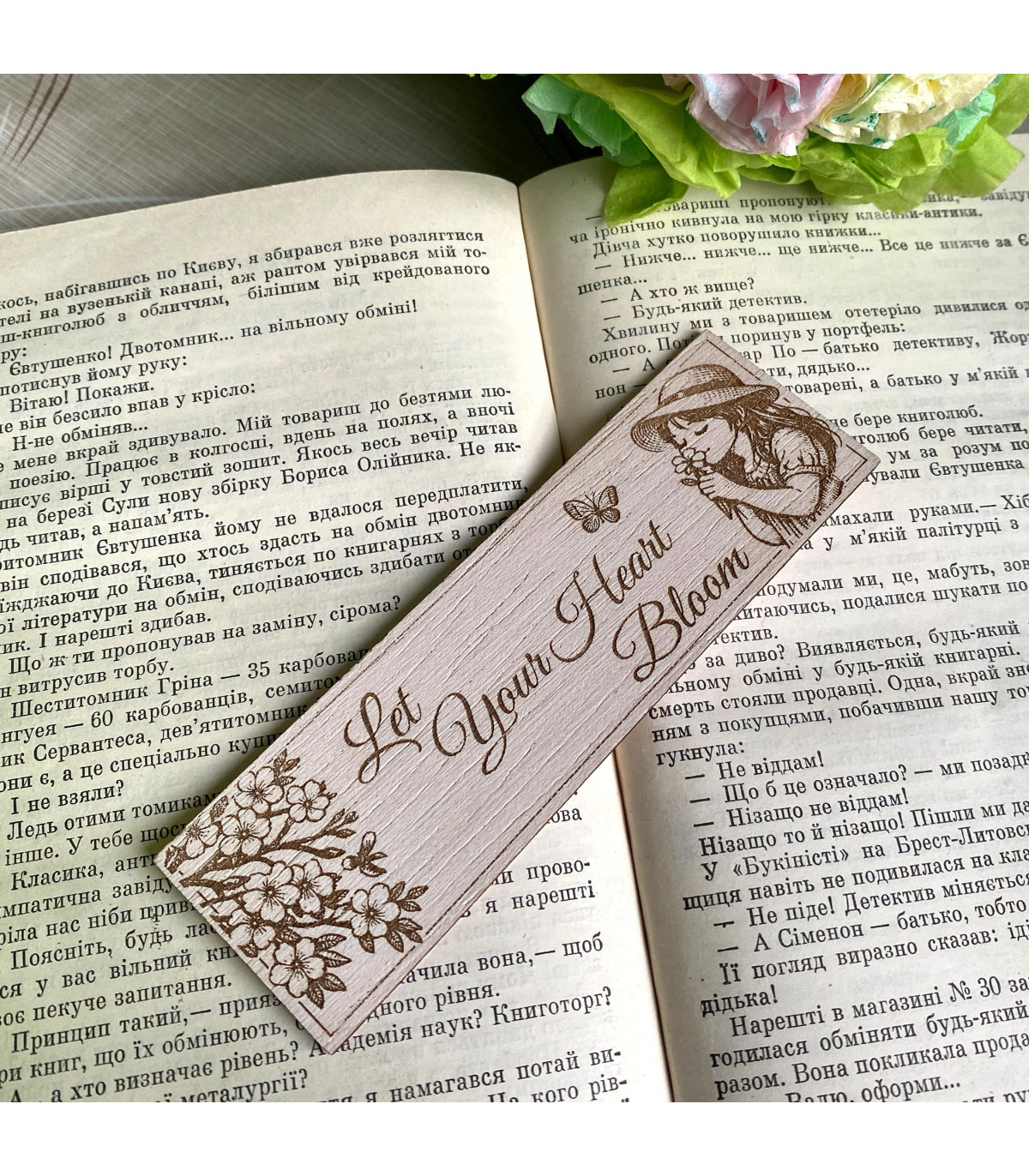 Унікальна дерев'яна закладка з написом "Let Your Heart Bloom"
