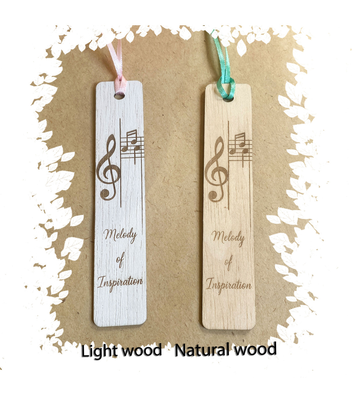 Вишукана дерев’яна закладка з лазерним гравіюванням нот і написом «Melody of Inspiration». Ідеальний подарунок для музикантів, книголюбів та творчих людей.